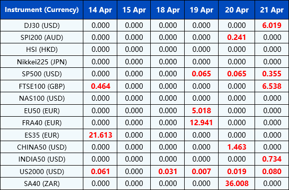 Please be advised that the dividends of the following index CFDs will be adjusted by upcoming ex-dividend dates. The comment for trading index CFDs will be in the following format “Div& < Product Name>& < Net Volume>” which show in the balance after the close of the day before the dividend payment date.